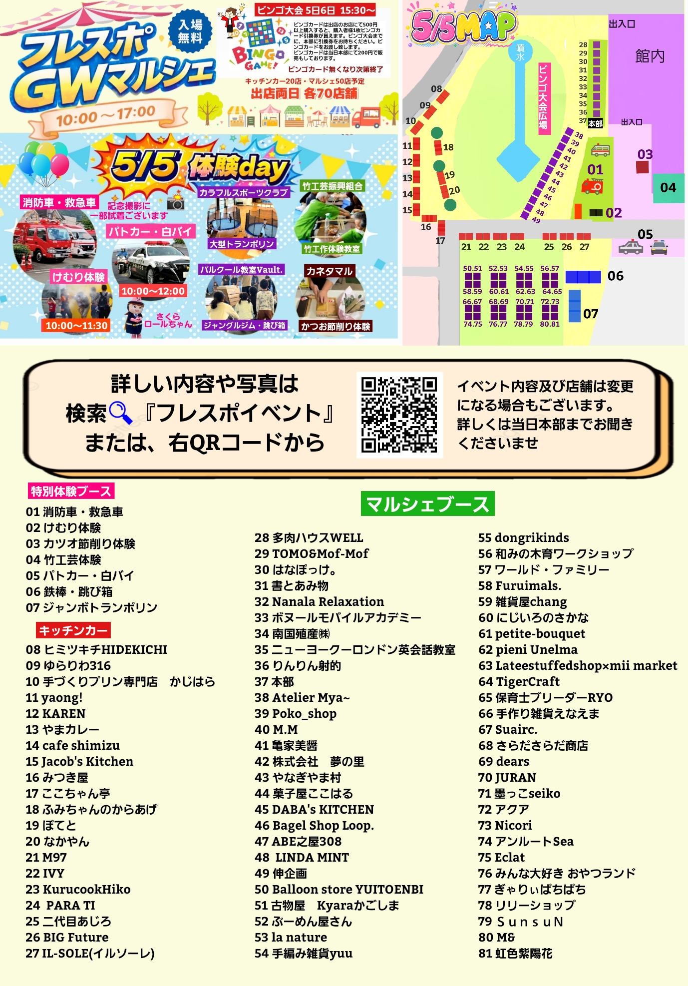 フレッシュ青果スポーツランドでは利用促進事業の一環として、【フレスポ GWマルシェ】を開催致します。