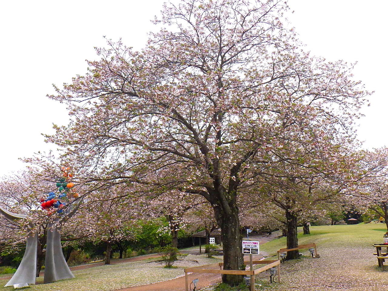 ふれあいスポーツランド【ソメイヨシノの標本木】は、満開を過ぎ、【散り始め】となりました!