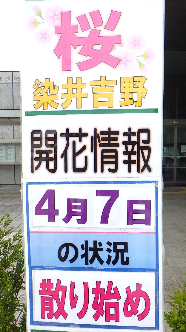 【ソメイヨシノ】は通常、満開から1週間くらいで見頃から散り始めになります、今年は4月1日が満開でしたので、やや早い散り始めとなりました。