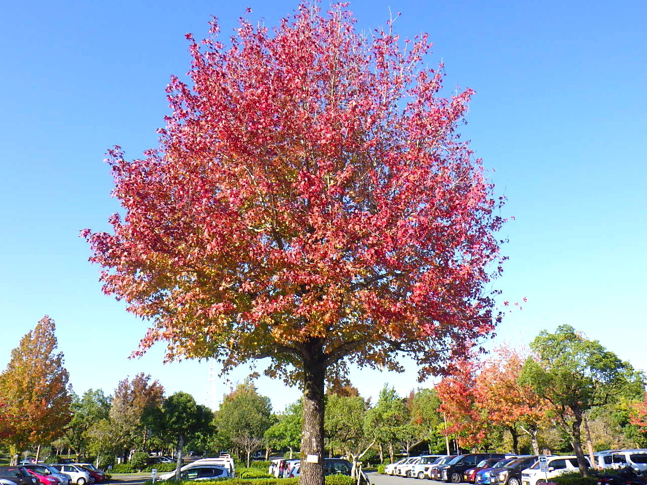 【アメリカフウ】と【タイワンフウ】の紅葉の見頃は12月上旬までは楽しめると思います。