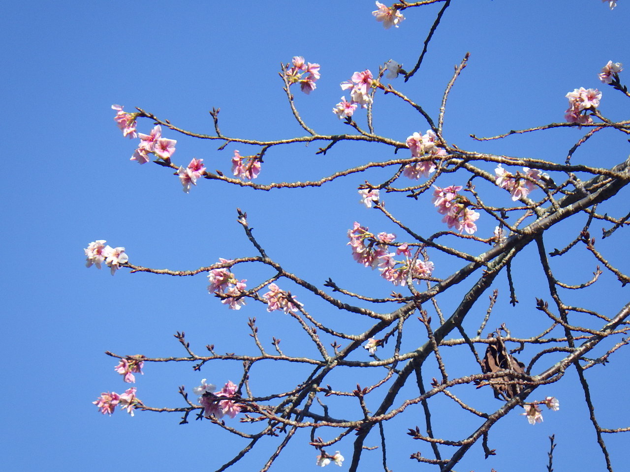 【暖流桜】と【川津桜】の狂い咲きがあちこちで見られます。
